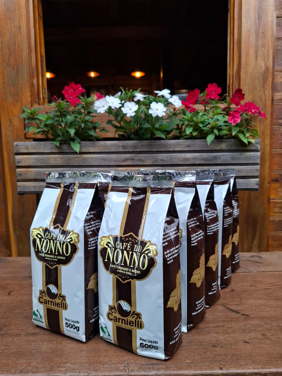 Kit 10 unidades de Café do Nonno Carnielli Torrado e Moído 500g, totalizando 5kg de café. Café 100% arábica, torrado e moído com moagem fina. É ideal para coadores de pano ou papel. Café do Nonno Carnielli, lembra os cafés dos tempos em que os avós (nonnos) se levantavam cedo para saborear o café da fazenda. Este café apresenta ponto de torra mais escuro, tornando o sabor mais encorpado.
