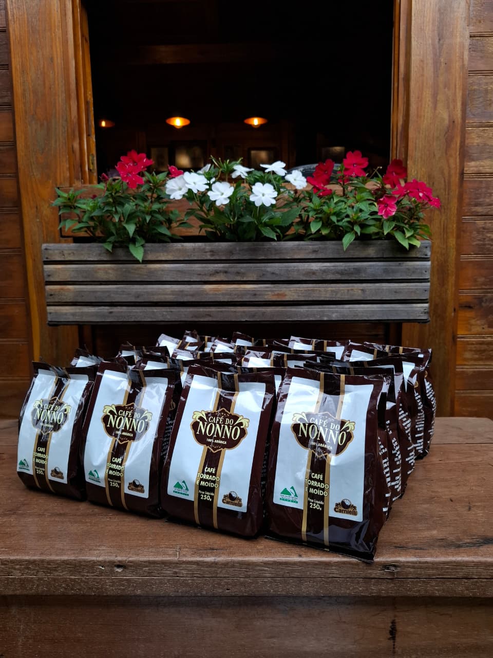 Kit com 20 unidades Café do Nonno Torrado e Moído 250g, totalizando 5kg de café. Café 100% arábica, torrado e moído com moagem fina. É ideal para coadores de pano ou papel. Café do Nonno Carnielli, lembra os cafés dos tempos em que os avós (nonnos) se levantavam cedo para saborear o café da fazenda. Este café apresenta ponto de torra mais escuro, tornando o sabor mais encorpado.